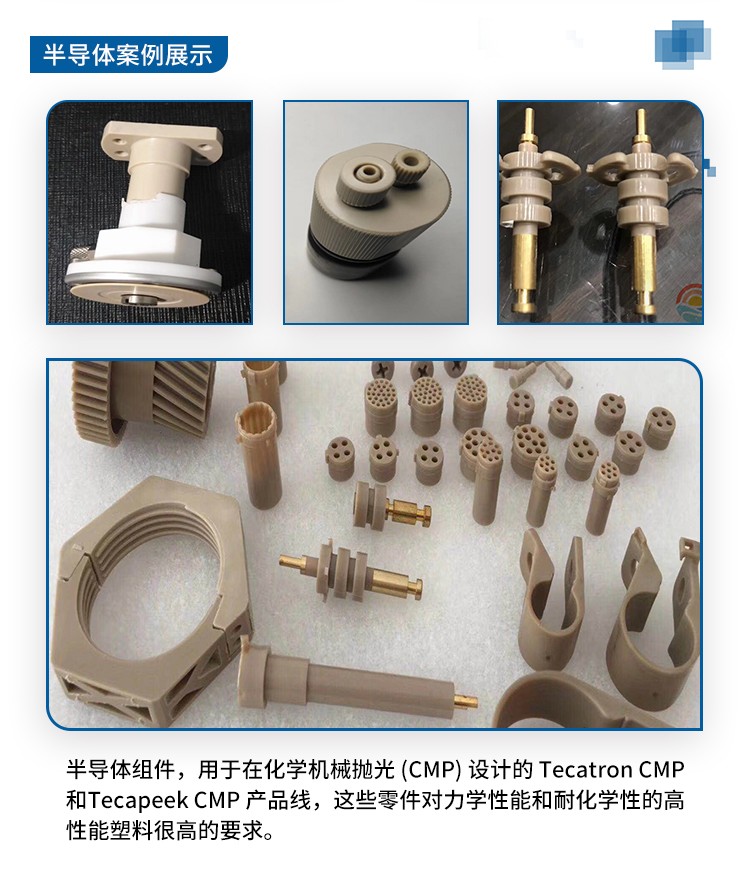 PEEK在一些特殊領(lǐng)域應(yīng)用過(guò)程中,經(jīng)常會(huì)遇到數(shù)量少、品種多的現(xiàn)象,這時(shí)用棒、板等型材進(jìn)行機(jī)械加工制造是十分有利的。